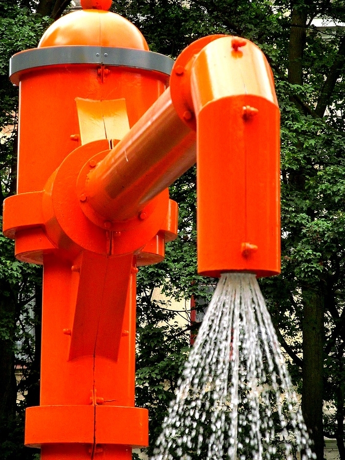 Wejście pod taki prysznic to nie lada odwaga, choć w upalne dni nie brakuje odważnych. Urządzenie stoi w Parku Miejskim im. Jana Pawła II w Aleksandrowie Kujawskim i jest ozdobą tego zielonego miejsca wypoczynkowego przed historycznym, XIX-wiecznym, najdłuższym w Europie dworcem kolejowym.