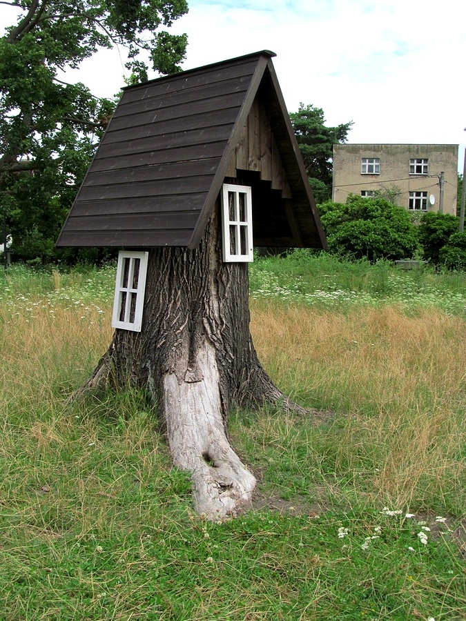 no i pięknie ,wystarczy pień drzewa przykryć niewielkim daszkiem ,dodać proste okienka i całoś prezentuje się b=całkiem ciekawie...>>>