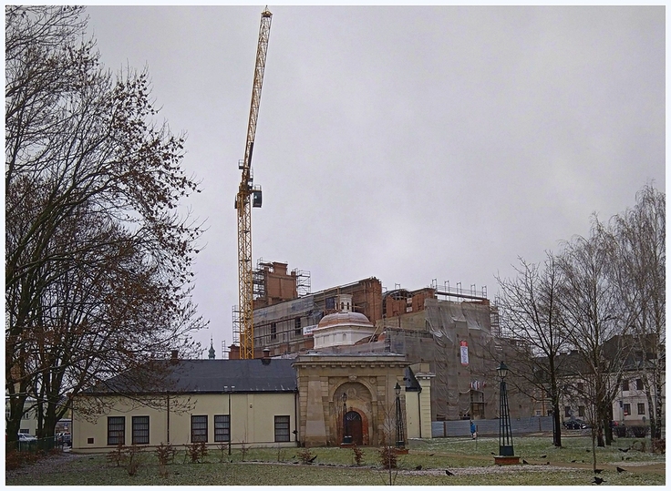 Nowa Brama Lwowska i kościół franciszkanów w odbudowie