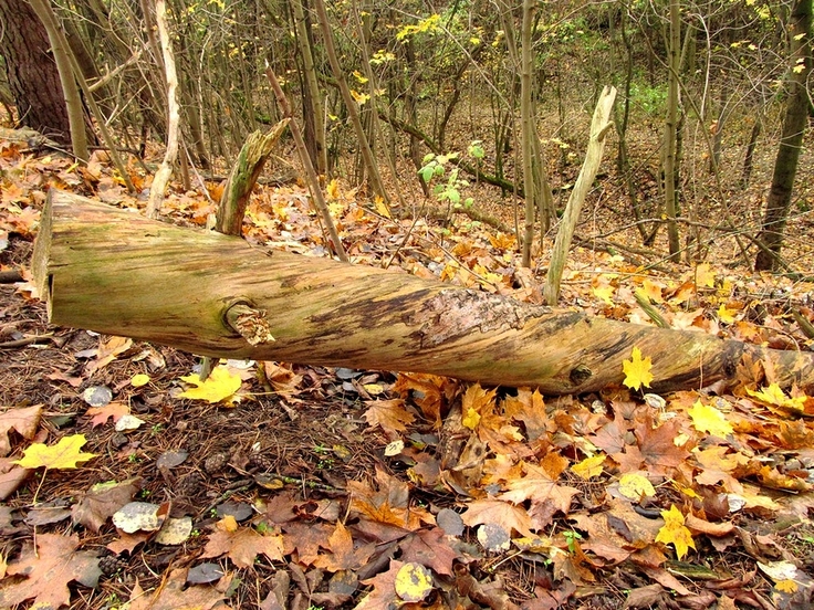 Patrząc na tę kłodę leżącą w lesie, mam wrażenie, jakby ktoś ją wcześniej wyżął i porzucił.