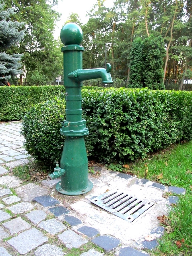 Choć ta pompa (na zdjęciu) stoi przed kościołem Podwyższenia Krzyża Świętego w Kaszczorku  letniskowej dzielnicy Torunia, to na pewno nie poleci z niej święcona woda.