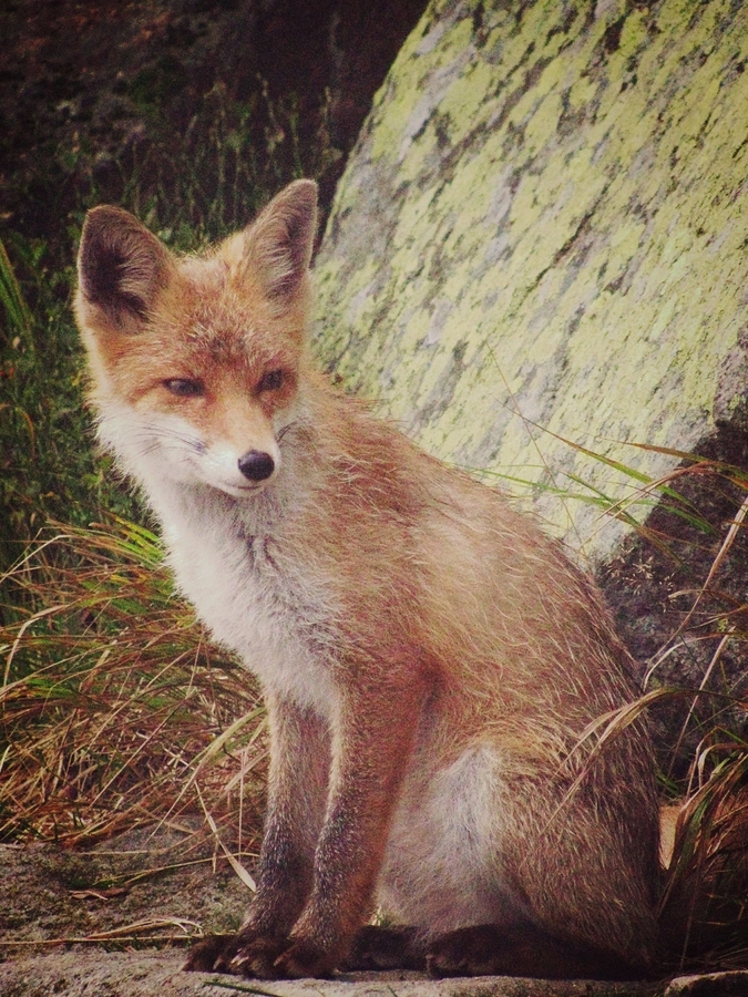 mały lisek czyhający na turystów w drodze na Samotnię...chyba przyzwyczajony do otrzymywania jedzenia od ludzi, bo wyglądał, niestety, na prawie oswojonego...