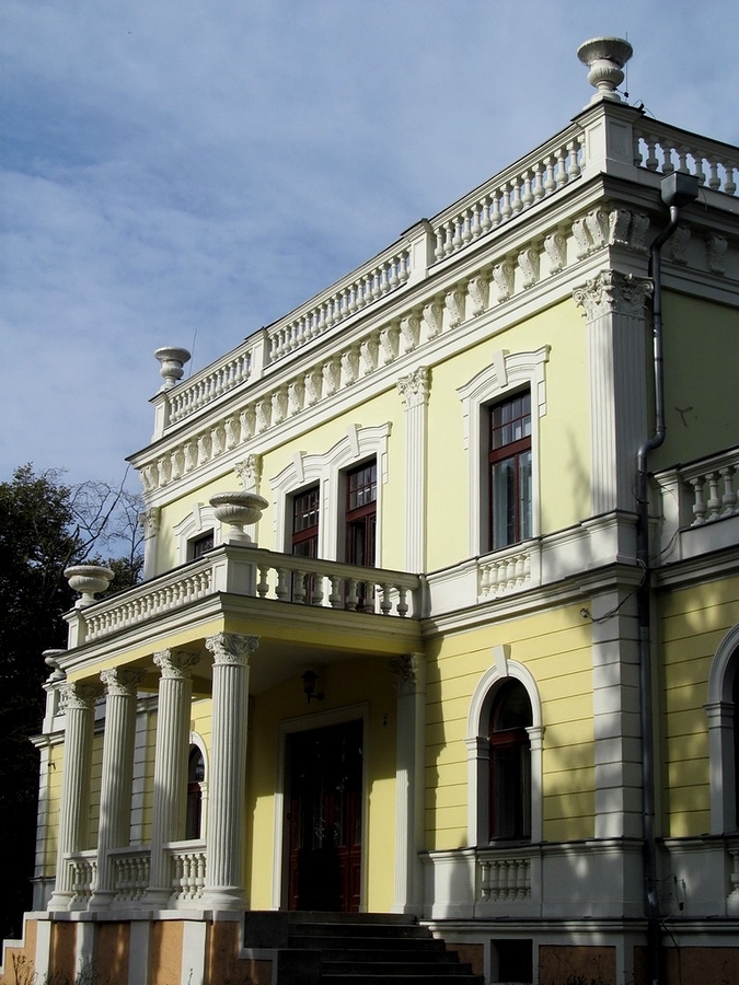 Na zdjęciu: Fragment belwederowskiego pałacu wykonanego w stylu elektycznym z przewagą elementów klasycystycznych. Pałac w 1859 r. zbudował dla swojego przybranego syna, Edwarda, Władysław Trojanowski właściciel majątku Białe Błota.