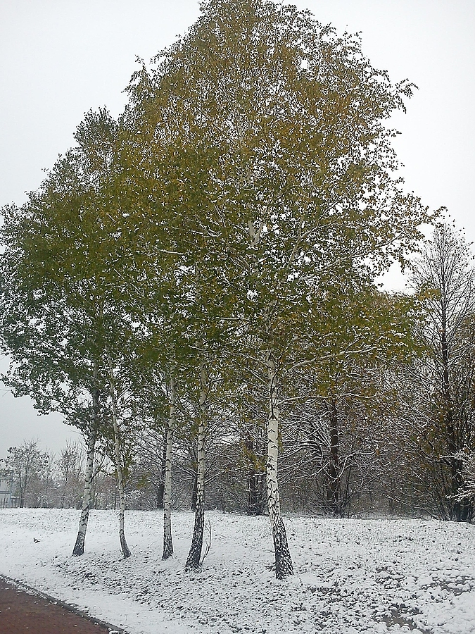zimowo już...ale brzozy jeszcze się zielenią