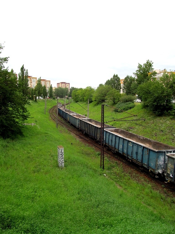 Te tory (na zdjęciu), po których jeżdżą w obie strony zarówno pociągi towarowe, jak i osobowe, rozdzielają tę część Torunia na dzielnicę MOKRE (po lewej stronie) i JAKUBSKIE PRZEDMIEŚCIE (po stronie prawej).