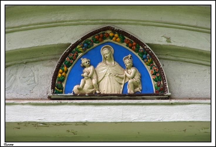 Turew - budynek gospodarczy należący do założenia pałacowego Chłapowskich _ szczegół umieszczony nad drzwiami