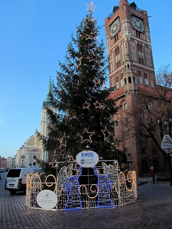 Od wielu już lat, tradycją Torunia się stało, stawianie dużej choinki przed gmachem Ratusza Staromiejskiego (na zdjęciu). Jak zwykle, cieszy ona zwłaszcza dzieci jeszcze przed Świętami Bożego Narodzenia i trwa aż do zakończenia tego pięknego okresu.