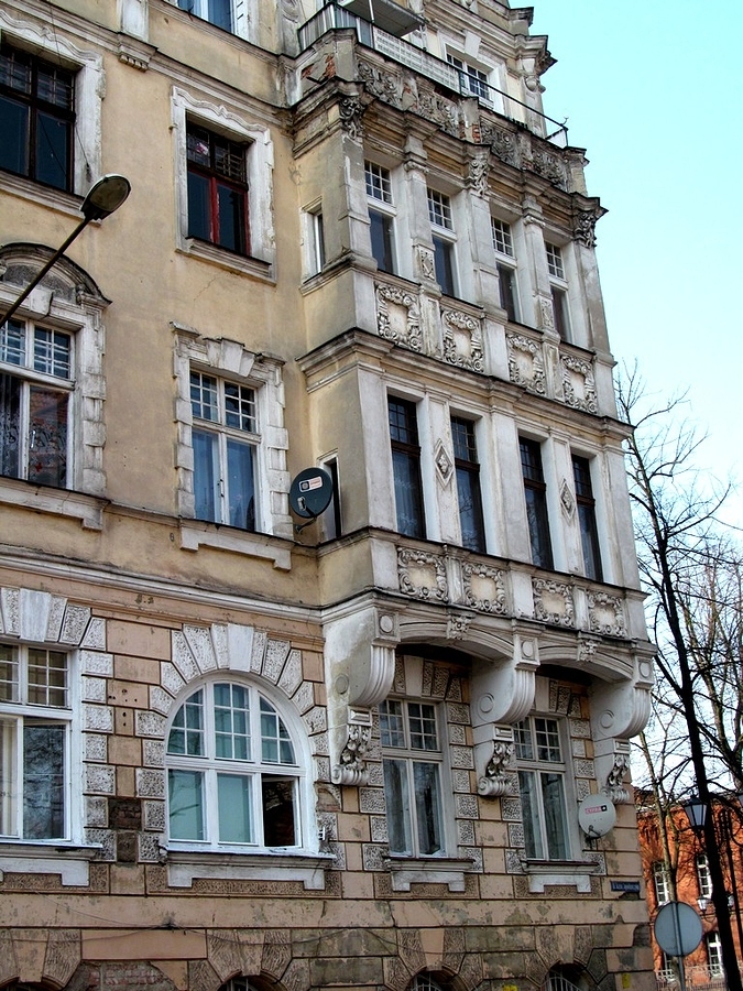 Narożna kamienica stojąca w Toruniu przy ul. Piastowskiej i Jagiellończyka, powstała na przełomie XIX i XX wieku w ówczesnej dzielnicy Wilhemstad (obecnie św. Katarzyny). Kamienica w elewacji posiada kilka detali architektonicznych, dzięki czemu jest jedną z ładniejszych w tej części miasta. Na zdjęciu: Widok kamienicy od strony ul. Jagiellończyka.