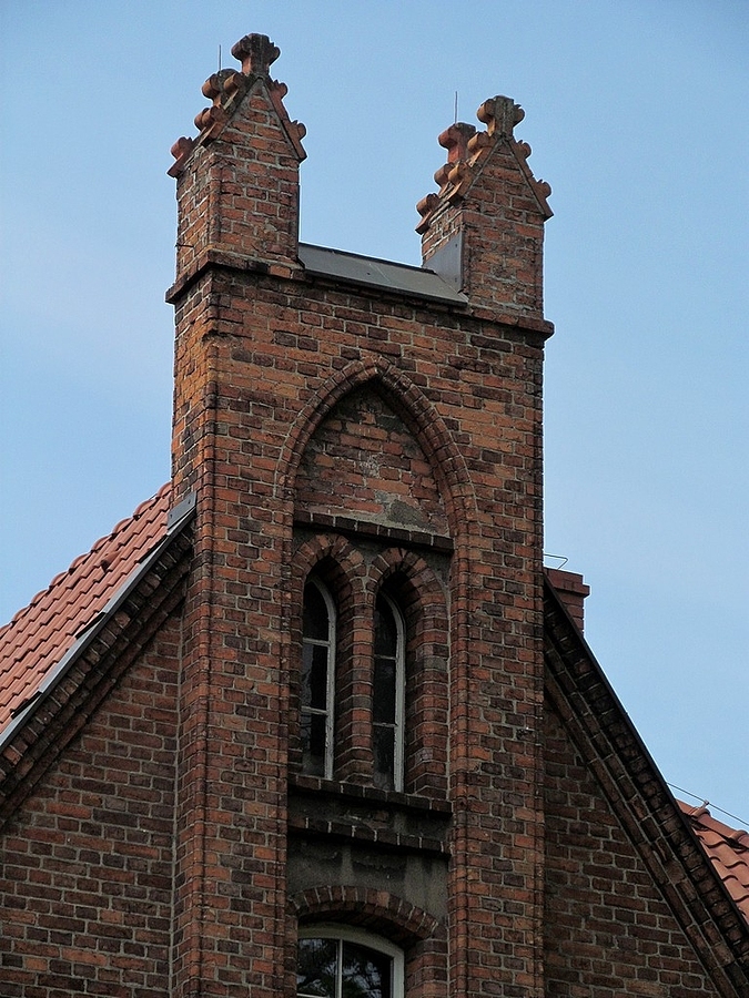 Na zdjęciu: Szczyt neogotyckiego obiektu CARITAS.