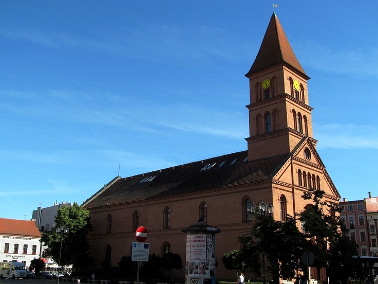 Najmłodszą częścią Zespołu Staromiejskiego Torunia jest Nowe Miasto Toruń, które powstało 13 sierpnia 1264 roku, uzyskując lokalizację miejską na wschód od Starego Miasta Torunia. Tuż po lokalizacji zaczęto wznosić mury miejskie, aby odgrodzić się od starszego \"brata\", które zaistniało na obecnym miejscu w 1236 roku, przeniesione z terenów zalewowych, na których już od 28 grudnia 1233 roku powstało miasto Toruń (dziś ten obszar nazywany jest Starym Toruniem). Nowe Miasto Toruń zamieszkiwali głównie rzemieślnicy, więc było znacznie uboższe. Ratusz dla nowo powstałego miasta wzniesiono w połowie XIV wieku, ale jego szczyt frontowy zaopatrzony w wieżyczkę zakończoną wysokim hełmem zbudowano dopiero w 1569 roku (na zdjęciu). Obiekt przestał pełnić swoją funkcję dopiero w 1454 roku, a więc wtedy, gdy nastąpił upadek władzy zakonu krzyżackiego. Wówczas Stare Miasto Toruń połączyło się z Nowym Miastem Toruniem, tworząc jeden organizm administracyjny. W 1667 roku obiekt ratuszowy na obecnym Rynku Nowomiejskim został przekazany ewangelikom i od następnego roku pełnił już funkcję zboru. W 1818 roku został jednak rozebrany z uwagi na spore zniszczenia, jakie powstały podczas wojen napoleońskich, ale na jego fundamentach wybudowano klasycystyczny kościół ewangelicki pw. Trójcy Świętej, który później stał się cerkwią prawosławną pw. Świętego Mikołaja, a 13 lat po zakończeniu II wojny światowej był już magazynem, na który ówczesne komunistyczne władze miejskie z satysfakcją wyraziły zgodę. W 1990 roku Fundacja TUMULT kupiła ten budynek, a po kapitalnym remoncie stworzyła w nim Centrum Kultury.