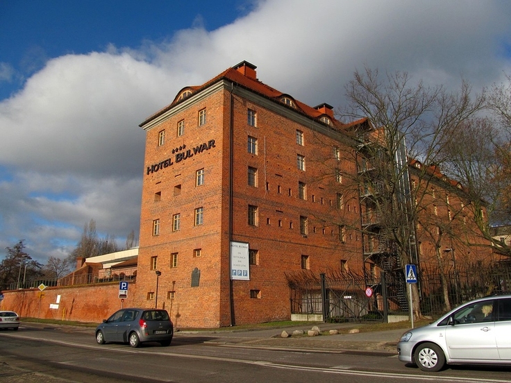 Pytanie: Co ma Toruń do morza?, może zadać każdy, nawet torunianin mieszkający w tym mieście od wielu lat, który niejednokrotnie moczył nogi w królowej rzek Wiśle, a o morzu mógł tylko pomarzyć. Ale trzeba wiedzieć o tym, że tradycje morskie Torunia sięgają nawet XIII wieku. Już wówczas istniał tu największy na ziemiach Polski, śródlądowy port morski, do którego przypływały statki kupieckie z Europy Zachodniej, a miasto już od 1280 roku należało do Hanzy i było jednym z największych jej członków pełniących ważne funkcje. Toruńskie nabrzeże, począwszy od Bramy Klasztornej (Świętego Ducha) do Bramy Żeglarskiej, tętniło życiem handlowo-kupieckim; stały tu różne urządzenia portowe potrzebne do załadunku i rozładunku towarów, żuraw, 200-metrowy pomost wyładunkowy, magazyny towarowe oraz spichrze. Za pośrednictwem tego portu, z Europą Zachodnią handlowali kupcy przede wszystkim z ziem pruskich, polskich, ruskich i węgierskich. I chociaż Bałtyk oddalony jest o 200 km, to właśnie w Toruniu w 1905 roku powstały warsztaty remontujące najpierw małe rzeczne jednostki pływające, by z biegiem lat rozwinąć zakres swoich usług i budować urządzenia pokładowe nawet własnej konstrukcji, dla dalekomorskich statków. Te niegdyś małe warsztaty remontowe, to dziś ogromne przedsiębiorstwo Toruńskie Zakłady Urządzeń Okrętowych TOWIMOR znane na całym świecie. Także w Toruniu na początku XIX wieku powstały Koszary Racławickie, pierwotnie nazywane Koszarami Nadwiślańskimi (Defensinskaserne), które służyły instytucjom związanym z marynarką wojenną, niezwykle prężnie rozwijającą się w tym czasie w naszym kraju. Dziś koszary to czterogwiazdkowy rodzinny hotel \"Bulwar\" (na zdjęciu) zarządzany zgodnie z istotnymi wartościami w obsłudze przebywających w nim gości, prowadzony zgodnie z poszanowaniem środowiska naturalnego.