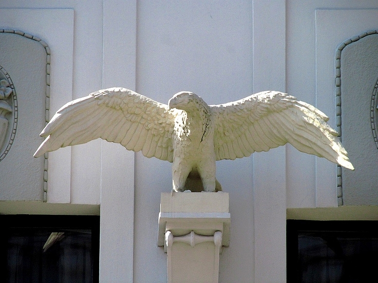 Ten biały orzeł (na zdjęciu) umieszczony jest nad oknami I piętra obecnego hotelu POD ORŁEM stojącym przy ul. Mostowej w Toruniu. Na przełomie XIX i XX wieku, kiedy niejaki Sackiewicz (brak imienia) przybył do Polski z USA, prowadził w tym miejscu także hotel, ale pod nazwą POD CZARNYM ORŁEM. W 1948 roku polscy komuniści wywłaszczyli przybysza z Ameryki z jego majątku i nigdy nie wypłacili mu żadnego odszkodowania. Obecnie hotel jest spółką polsko-włoską.