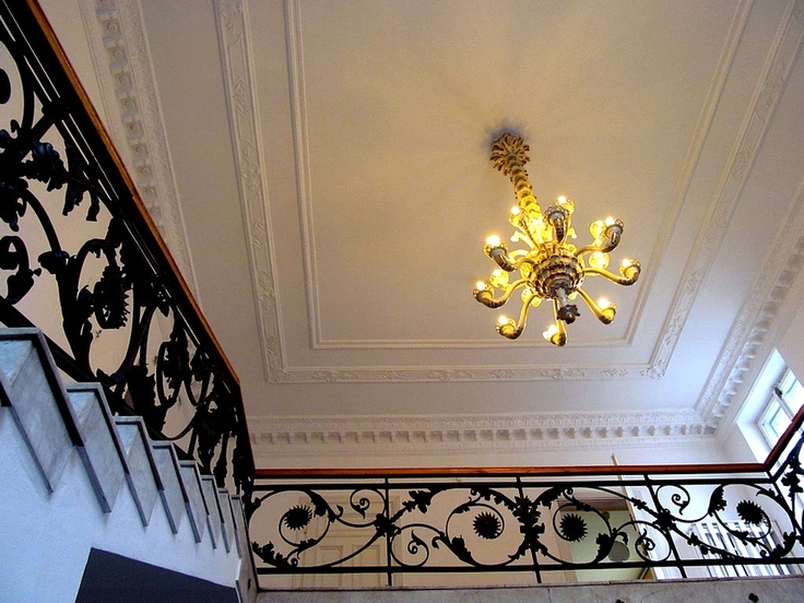 Ten żyrandol (na zdjęciu) wisi pod sufitem i oświetla klatkę schodową pałacu stojącego w parku w Aleksandrowie Kujawskim. Ostatni właściciel tej posiadłości hrabia Edward Mycielski-Trojanowski, wypędzony ze swoich dóbr przez komunistów w 1945 r., zamieszkał w Toruniu i tutaj w wielkiej biedzie zmarł w 1954 r.