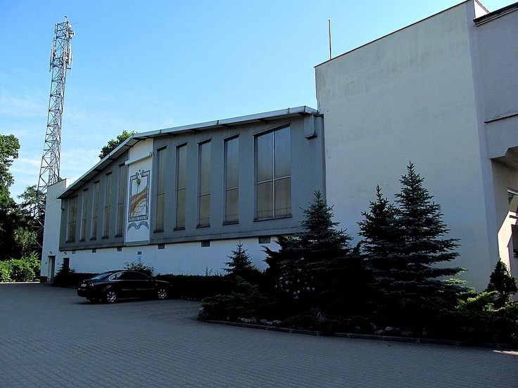Na zdjęciu: Hala sportowa salezjańskiej szkoły widziana od strony dziedzińca szkolnego.