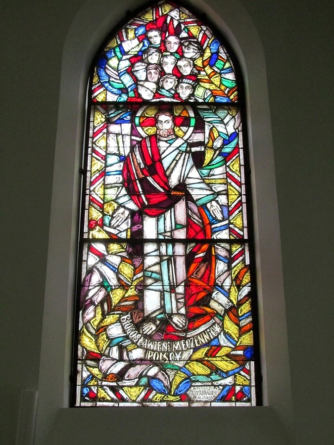 Na zdjęciu: Witraż przedstawiający błogosławionych męczenników polskich.