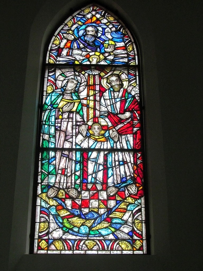 Na zdjęciu: Jeden z witraży w aleksandrowskim kościele przedstawiający Świętą Rodzinę.