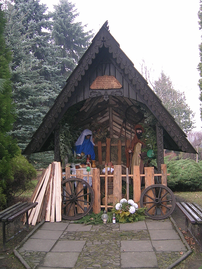 Drewniana kapliczka z szopką w Mikuszowicach.