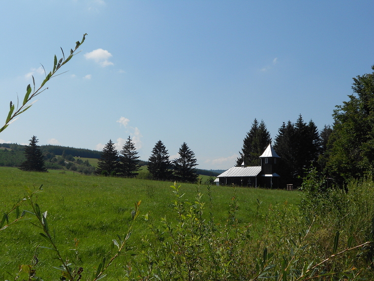 Cmentarz wojskowy zaprojektowany przez słowackiego architekta - Dusana Jurkovicza. Beskid Niski. Wieś Grab
