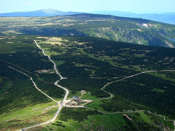 Widok ze Śnieżki na Śląski Dom