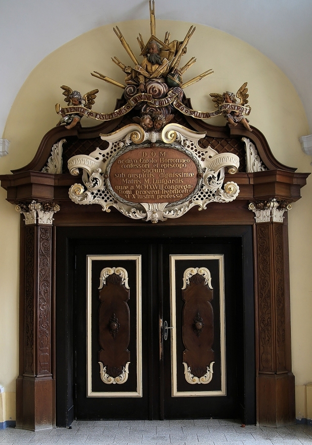 Portal dolnej kaplicy klasztoru wykonany przez wrocławskiego rzeźbiarza Brunona Tschoetchela ur. 29.03.1874 w Świebodzicach.
