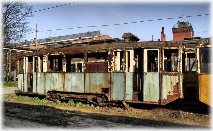 mkną po szynach niebieskie tramwaje, przez wrocławskich ulic sto...