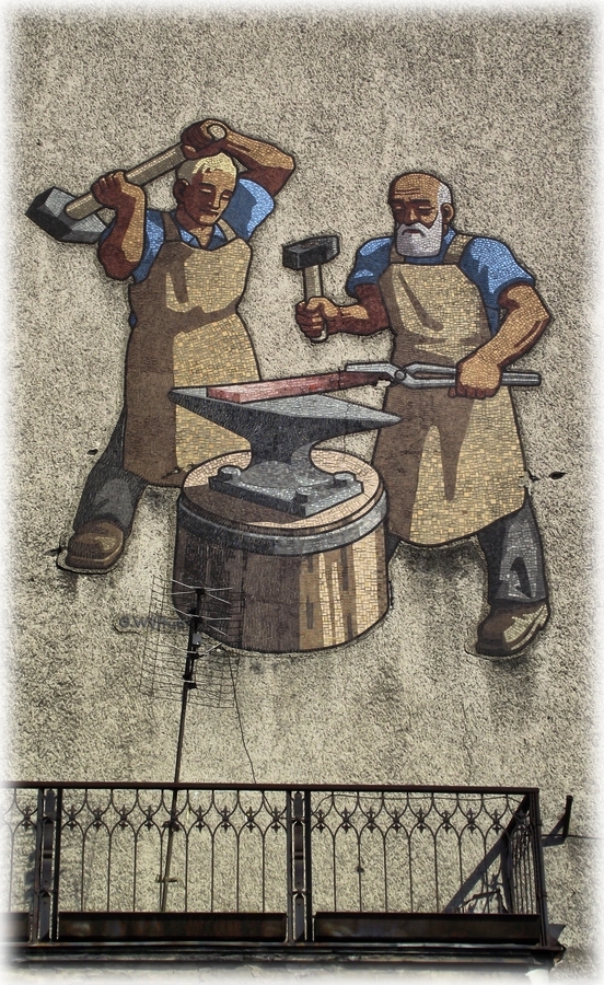 mozaika ceramiczna na ścianie budynku firmy