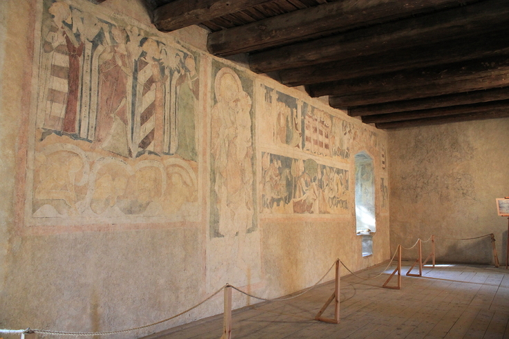 Najciekawszym elementem wyposażenia wieży są czternastowieczne malowidła ścienne, przedstawiające legendę o rycerzu króla Artura - sir Lancelocie z Jeziora (jedyne zachowane takie na świecie). Można je oglądać na drugim piętrze wieży .