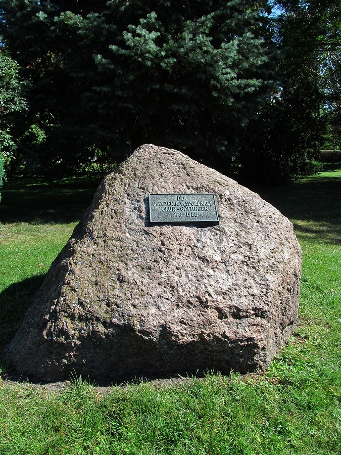 Dla uczczenia 10-letniej współpracy dwóch miast: Torunia i Getyngi (1978  1988), na plantach przy ul. Solidarności, w pobliżu Muzeum Etnograficznego, ustawiono kamień pamiątkowy. Dzięki współpracy obu miast przełamano uprzedzenia i polsko-niemieckie stereotypy.