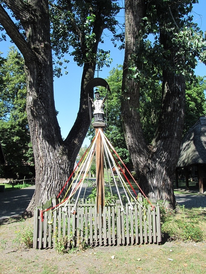 Kto wykonał tę (na zdjęciu) przydrożną kapliczkę z figurką świętego Jana Nepomucena, która od 1990 r. stoi tuż za wejściem do Parku Etnograficznego w Toruniu  dziś nikt nie wie. Wiadomo natomiast, że ufundował ją około 1880 r. Teodor Katarzyński  rzeźnik z Młyńca w gminie Lubicz (woj. kujawsko-pomorskie), i że w czasie II wojnie światowej słup, na którym była zamocowana, został zniszczony przez Niemców. Figurkę jednak uratowali okoliczni mieszkańcy i po wojnie powróciła na swoje pierwotne miejsce.