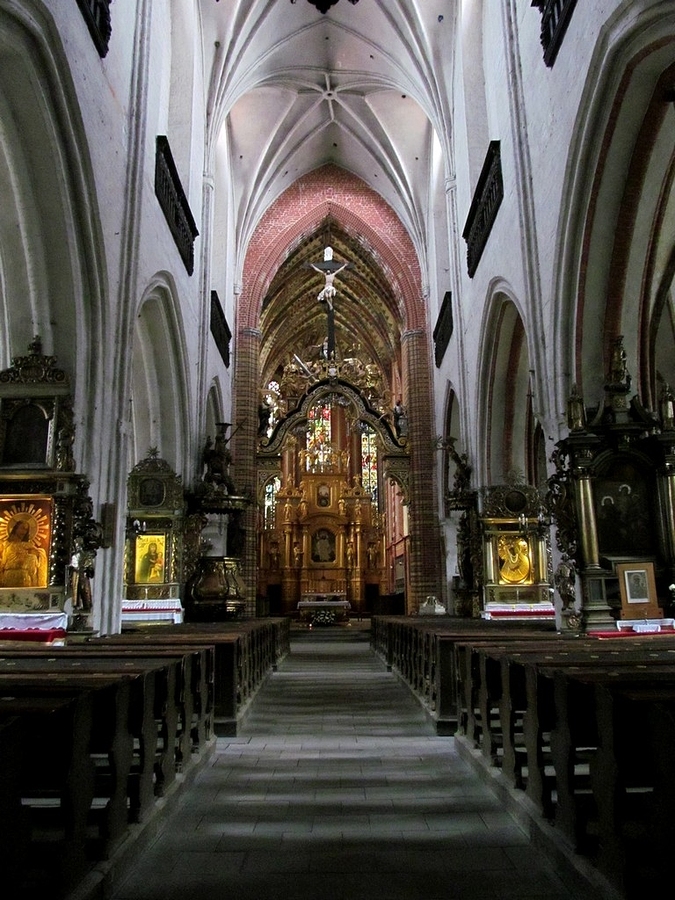Kościół Św. Jakuba w Toruniu  to dawna fara Nowego Miasta Toruń. Kamień węgielny pod budowę, w 1309 r. położył biskup Herman i jeszcze tego samego roku rozpoczęto budowę prezbiterium, które widoczne jest na załączonej fotografii. Na zdjęciu: Główna nawa, której wysokość wynosi 20,65 metrów.