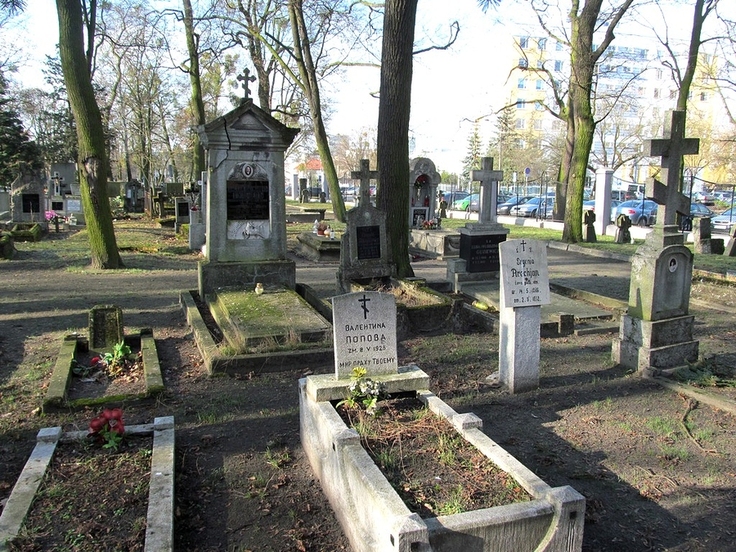 Na toruńskim Cmentarzu Komunalnym nr 1 (Garnizonowym) jest wiele grobów zmarłych wyznania prawosławnego. Są oni zgrupowani w kwaterze przeznaczonej na ich pochówek. Na zdjęciu: Fragment prawosławnej kwatery.