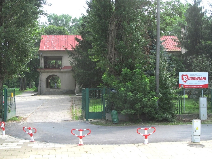 W 1947 r. powołano do życia Zrzeszenie Sportowe BUDOWLANI w Toruniu. 10 lat później, decyzją Prezydium Związków Zawodowych, zniesiono w całym kraju wszystkie Zrzeszenia, powołując w ich miejsce  samodzielne kluby sportowe. Od tego momentu więc, jest to już Toruński Klub Sportowy BUDOWLANI. Natomiast na Walnym Zgromadzeniu członków klubu w 1995 r., zdecydowano na małą zmianę nazwy i odtąd pełna nazwa klubu, to: Toruński Klub Sportowo-Turystyczny BUDOWLANI. Na zdjęciu: Obiekt należący od samego początku do BUDOWLANYCH, stoi przy ul. Majdany 1 w Toruniu.
