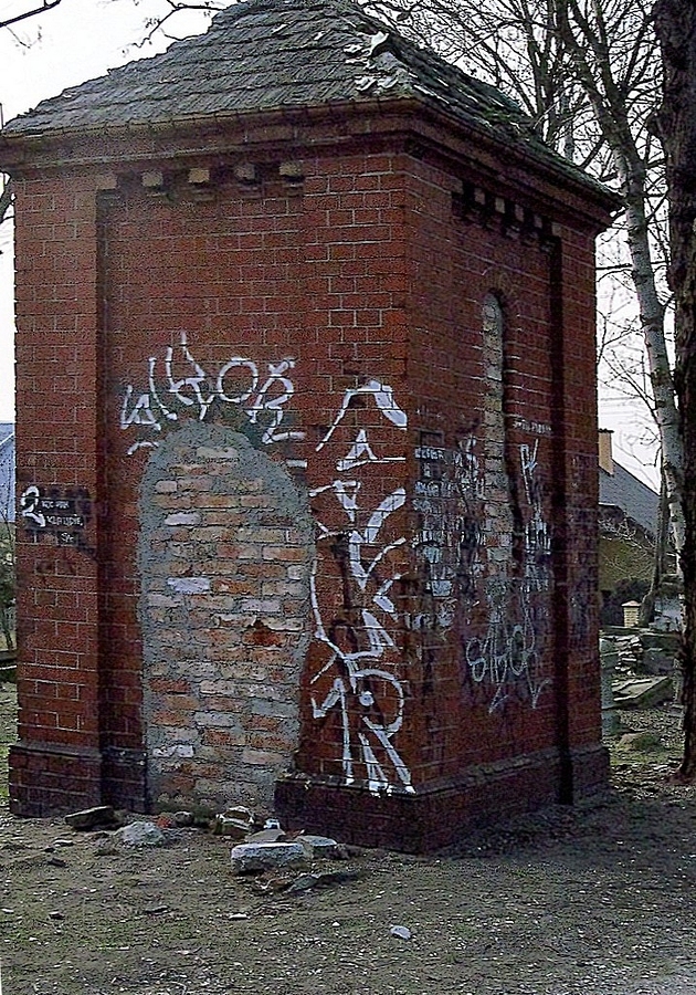 Zanim zamurowano wejście i wąskie okienka tej cmentarnej kapliczki, została wcześniej doszczętnie okradziona z wszystkiego, co mogło się złodziejom przydać lub na czym mogli spieniężyć. Był to okres, w którym nie dbano o relikty przeszłości, zwłaszcza, jeśli dotyczyły innego, niż katolickie, wyznania. Władzom miejskim było to nawet na rękę. Kapliczka po dzień dzisiejszy stoi na cmentarzu prawosławnym przy ul. Wspólnej (dawniej Cmentarnej) w Aleksandrowie Kujawskim.