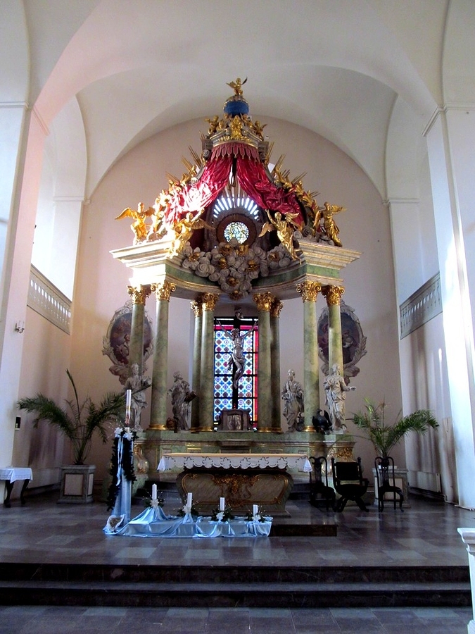 W kościele pw. Św. Ducha w Toruniu, zastosowano baldachimowy ołtarz główny, którego autorem jest Efraim Schroeger (Ephraim Schröger)  polski architekt niemieckiego pochodzenia, urodzony w Toruniu (zmarł w Warszawie); był przedstawicielem wczesnego klasycyzmu. Ołtarz natomiast wyposażono w rzeźby autorstwa Jana Antoniego (Johana Antona) Langenhahna, który zmarł w Toruniu (miał on syna o tych samych imionach, który też był rzeźbiarzem).