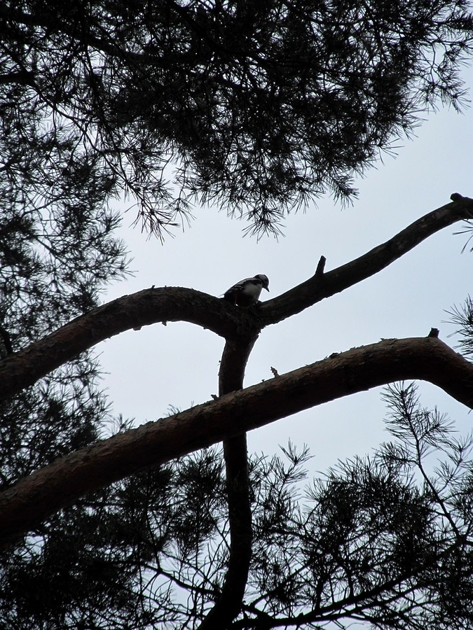 Gdy usłyszałem stukot w gałąź drzewa, z trudem odszukałem wzrokiem sprawcę. Kłopot miałem ze zrobieniem zdjęcia, które wyszło, jak wyszło.