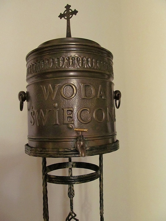 W przedsionku głównego wejścia do kościoła pw. Św. Antoniego w Toruniu, stoi pojemnik ze święconą wodą, więc każdy może zaczerpnąć jej do pojemniczka na użytek własny.