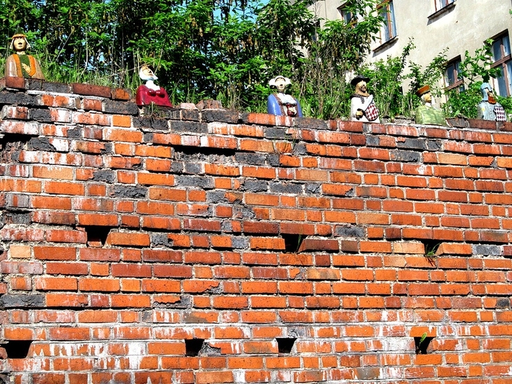 Te ceramiczne rzeźby (na zdjęciu), umieszczone na średniowiecznych murach, jakie jeszcze pozostały w Toruniu (ul. Podmurna) to artystyczne dzieła Dariusza Przewięźlikowskiego. Przy ich tworzeniu artysta wzorował się na piętnastowiecznym obrazie Pasja, który znajduje się w kościele św. Jakuba w Toruniu; na obrazie przedstawione zostały wizerunki toruńskich mieszczan.