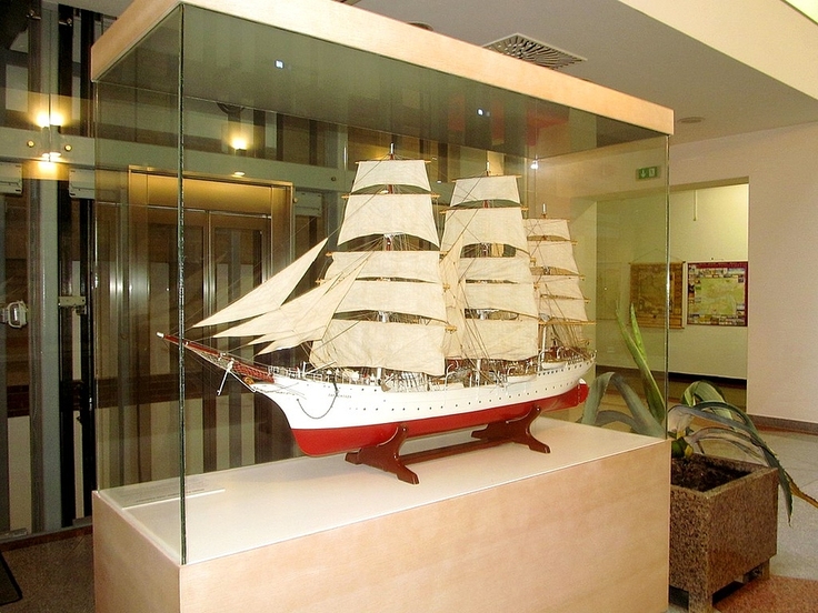 Na zdjęciu: Model Daru Pomorza, który stoi obok wind w Urzędzie Marszałkowskim w Toruniu.
