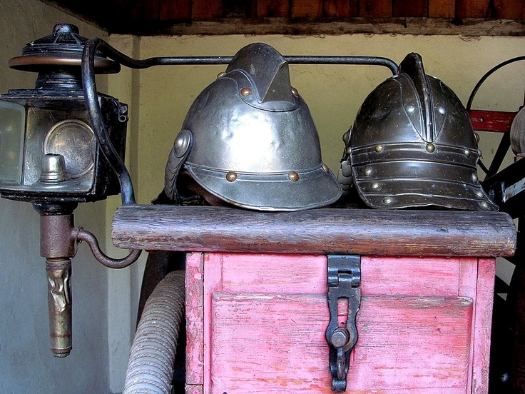 Te dwa hełmy strażackie i latarenka zamocowana do wozu strażackiego (na zdjęciu), znajdują się na terenie Parku Etnograficznego w Toruniu, w dawnej remizie strażackiej, przeniesionej tutaj ze wsi Pływaczewo (gmina Wąbrzeźno), która służyła okolicznym mieszkańcom jeszcze do 1978 r.