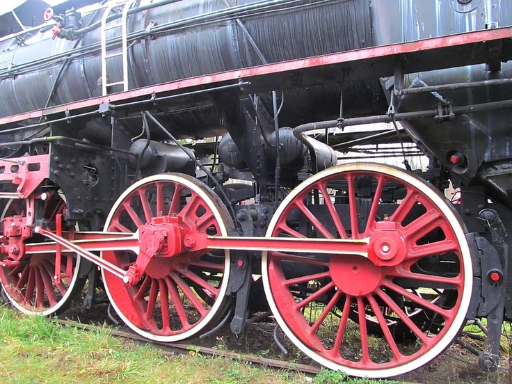 Koła, drążki, rurki... a wszystko potrzebne w parowozie, aby tak gładko, tak lekko toczył się po w dal...