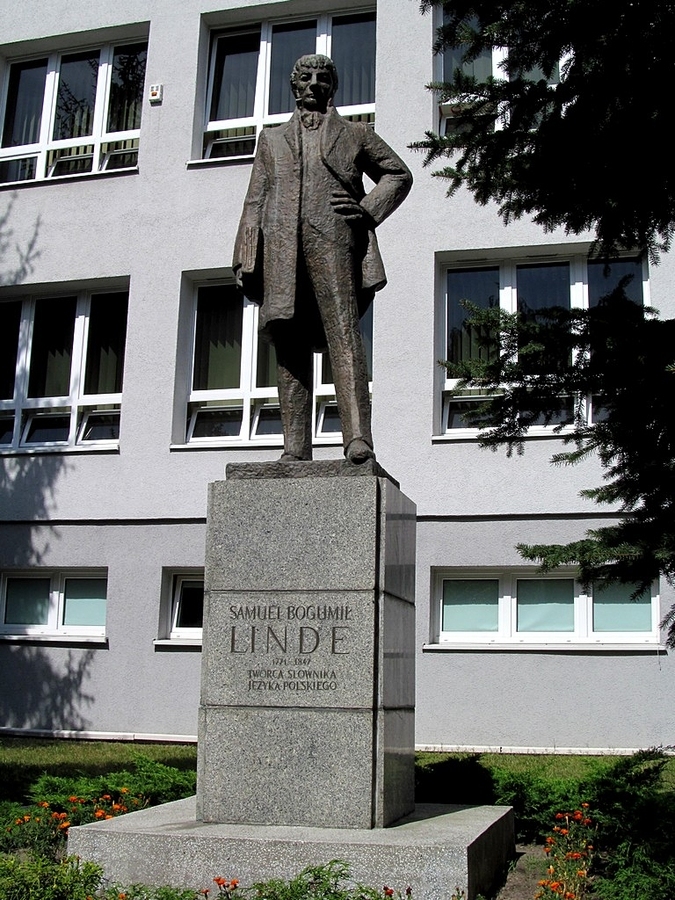 Przed Książnicą Kopernikańską w Toruniu stoi pomnik urodzonego w tym mieście Samuela Bogumiła Lindego (na zdjęciu), który odsłonięto w grudniu 1976 r. Pomnik jest dziełem artysty-rzeźbiarza Witolda Marciniaka.