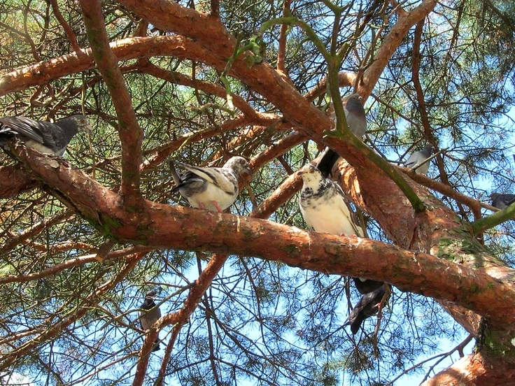 Czasami na ziemi jest ich gromada, niektóre wolą posiedzieć na gałęzi drzewa.