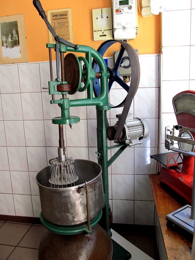 Wchodząc do piekarni przy ul. Szczytnej w Toruniu, tuż w rogu stoi sprzęt do wyrobu ciasta (na zdjęciu). Jest to jeden z elementów wystroju lokalu, ale i zarazem prezentacja tego, jakimi urządzeniami posługiwali się dawniej piekarze w swojej codziennej pracy.