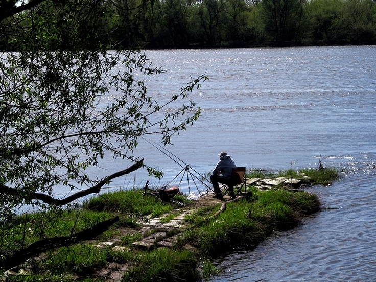 Gdy na dworze ładna pogoda, tym przyjemniej jest powędkować sobie trochę, siadając na zydelku na główce i obserwować wędkę zanurzoną w Wiśle.