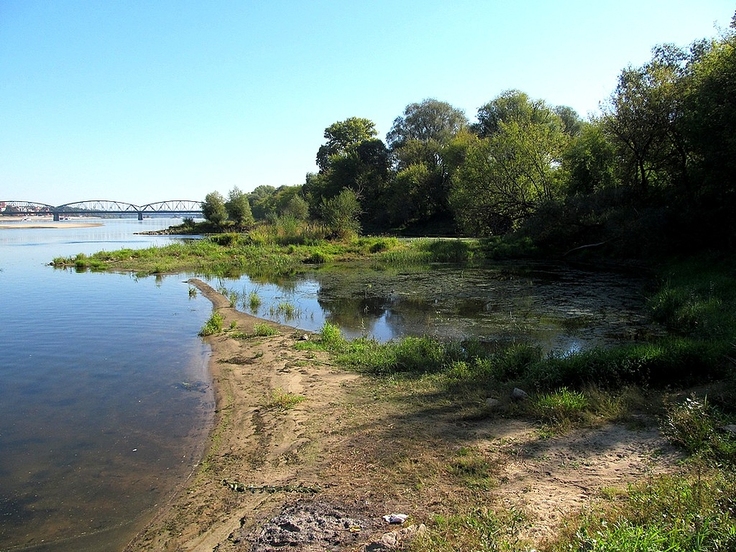 Brzegi Wisły na wielu toruńskich odcinkach porastają dziką roślinnością; często występują też zakola takie, jak na zamieszczonej fotografii.