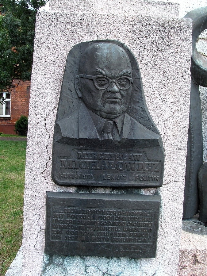 Ta postać na pomniku (na zdjęciu), przedstawia Mieczysława Michałowicza działacza społecznego i politycznego. Był on pułkownikiem Wojska Polskiego, a zarazem lekarzem. Założył Polskie Towarzystwo Pediatryczne i działał w wolontariacie. W latach trzydziestych XX wieku był senatorem IV kadencji w II RP, a po II wojnie światowej był posłem najpierw do Krajowej Rady Narodowej, a potem do Sejmu Ustawodawczego. Pomnik poświęcony tej postaci stoi w Aleksandrowie Kujawskim na skwerku przy ul. Słowackiego.