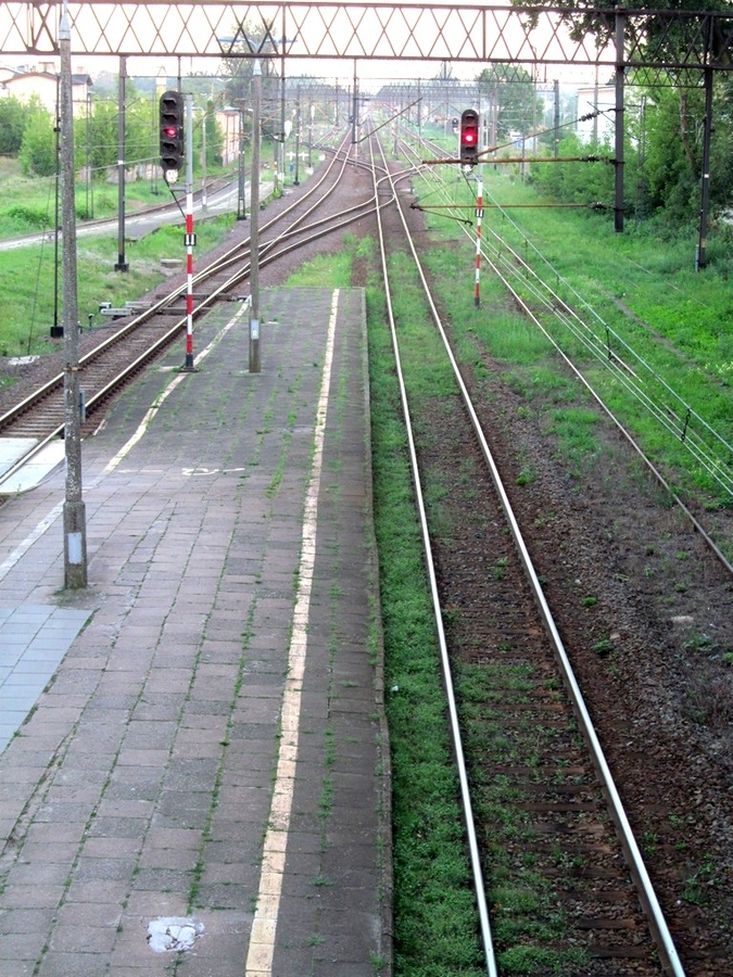 Ten (na zdjęciu) rozjazd torów kolejowych w kierunku Włocławka tuż za stacją Aleksandrów Kujawski, można zobaczyć z wysokości, gdy się wejdzie na wiadukt ponad peronami, jaki od lat łączy ze sobą to miasto, rozdzielone dworcem kolejowym i linią kolejową.