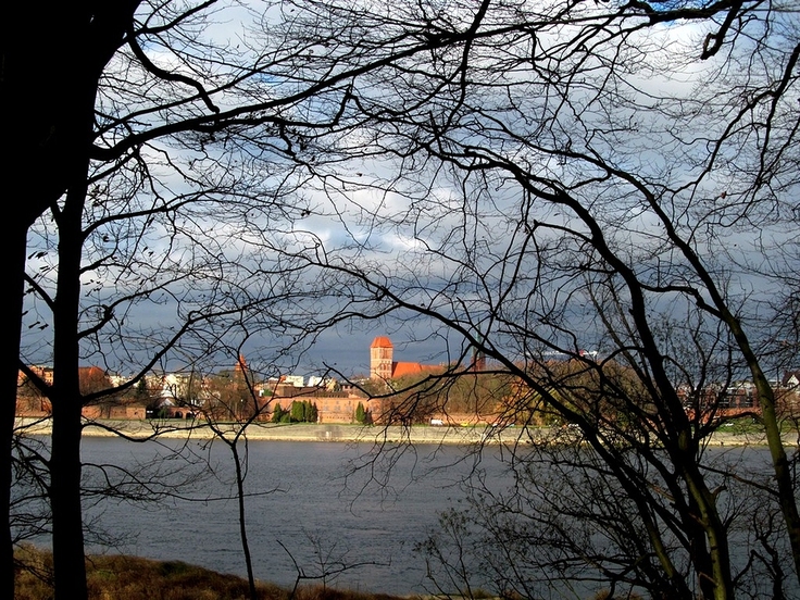 Toruń najczęściej podziwia się \"od środka\", zwłaszcza jego stare i nowe miasto. Warto się jednak wybrać na lewy brzeg Wisły i stamtąd spojrzeć na jego panoramę, i to bez względu na porę roku, bo o każdej zachwyci swoim widokiem nabrzeża i średniowiecznych murów miasta.