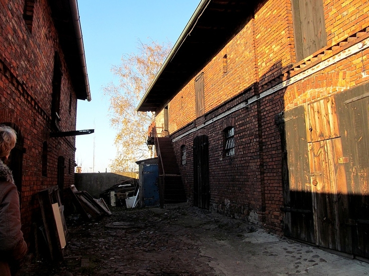 Takie podwórka, jak na załączonej fotografii, można jeszcze spotka w starej zabudowie mieszkaniowej. Na zdjęciu: Fragment podwórka przy kamienicy czynszowej na Podgórzu lewobrzeżnej dzielnicy Torunia.