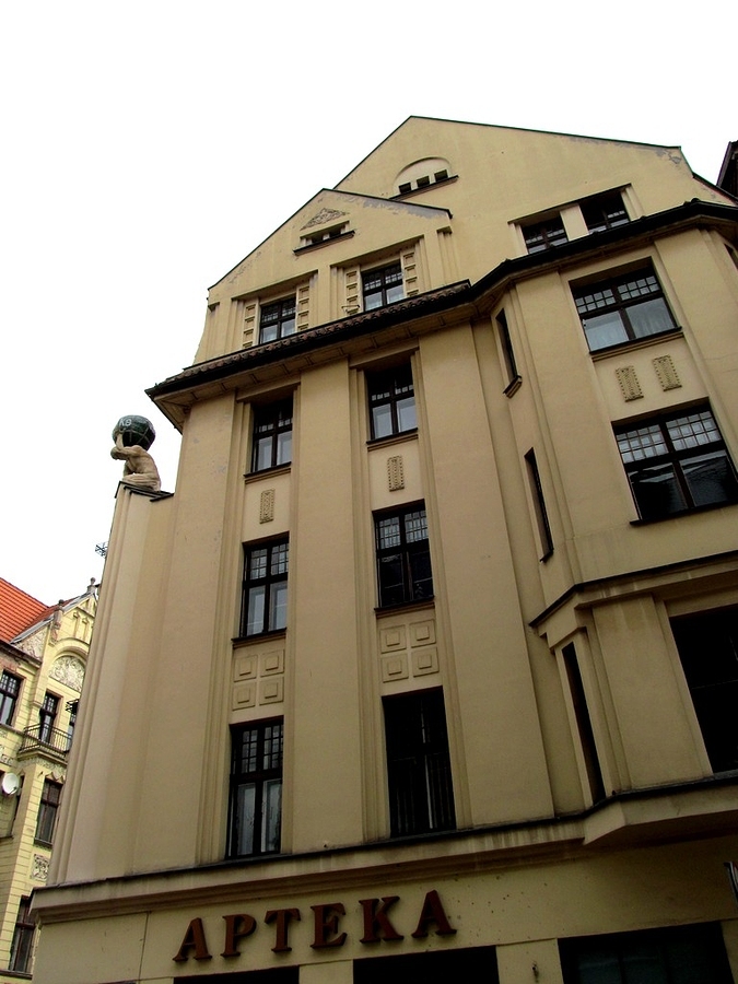 Ta apteka (na zdjęciu) powstała w Toruniu w 1623 r., ale od tamtego czasu jej bryła zmieniła się. Budynku z przełomu XV i XVI wieku, zastąpiony został nowym, dużo większym i odtąd na wysokości III piętra, znajduje się figura Atlasa dźwigającego kulę ziemską, a na fasadzie jest m.in. płaskorzeźba herbu miasta. Więcej o jej burzliwych losach można dowiedzieć się z artykułu pt. \"Apteka Radziecka\", który opublikowałem w ekskluzywnym miesięczniku krajoznawczo-turystycznym POZNAJ SWÓJ KRAJ (nr 4/2017). Polecam tę lekturę. Na zdjęciu: Budynek apteki z widocznym Atlasem.